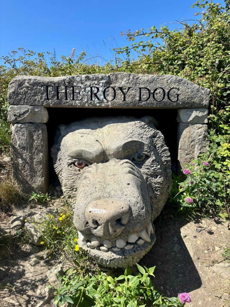 With the sun already climbing, we set off along the east coast route of the island, heading toward Portland Bill – the southern tip. The route offered some of the most spectacular views we’ve seen yet. Towering cliffs, beautiful serene blue sea, and a near-endless coastline stretching back towards Land’s End, which now feels like a lifetime ago. Along the way, we passed Tout Quarry Sculpture Park, a fascinating open-air collection of carvings and art installations nestled among old quarry stone – a reminder of Portland’s historic connection to the building trade, with Portland Stone famously used in iconic structures like St Paul’s Cathedral and parts of Buckingham Palace.