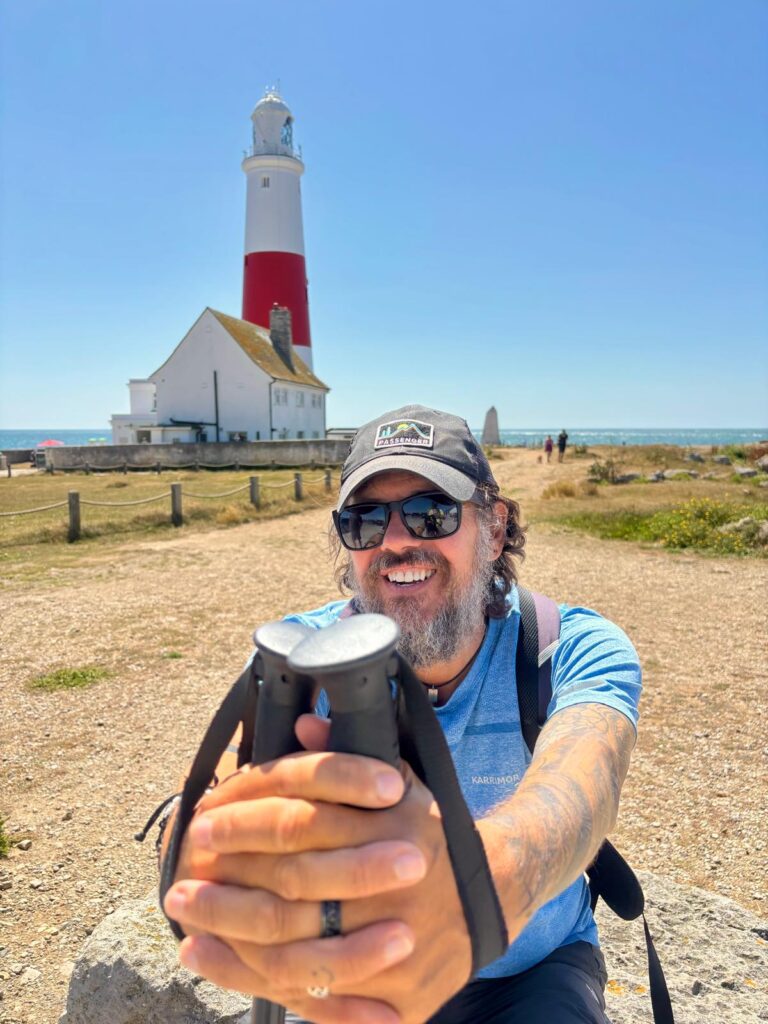 The path wasn’t particularly steep or challenging, but the cumulative distance of the entire journey (and let’s be honest – maybe last night’s drinks too!) started to show. My legs were feeling heavy, and little aches began to creep in. Still, the views kept our spirits high. By the time we arrived at Portland Bill Lighthouse, the scenery was breathtaking – the sea, seagulls overhead, and crowds of sightseers soaking up the same natural beauty we’d been lucky enough to walk through. We sat down here for a well-earned lunch, taking it all in.